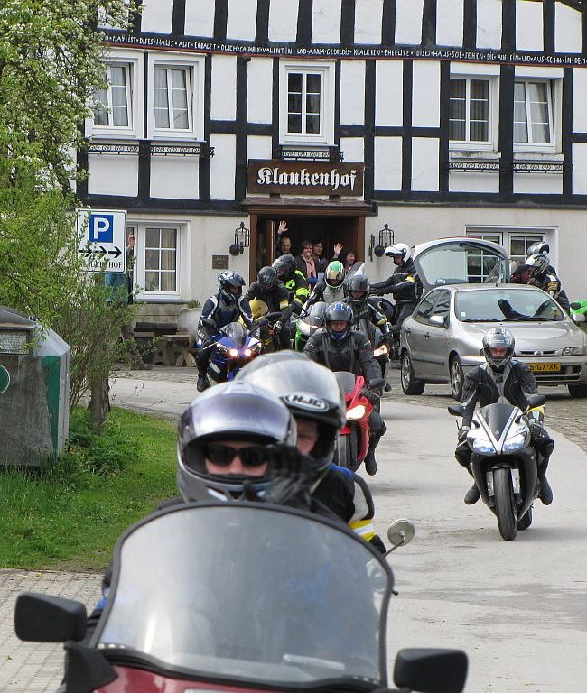 Für große Motorradgruppen ist unsere weitläufige Hofanlage von ernomen Vorteil: Hier könnt Ihr Euch vor oder nach den Fahrten sammeln, die Tour noch einmal durchsprechen oder einfach über den ein oder anderen Auspuff fachsimpeln.