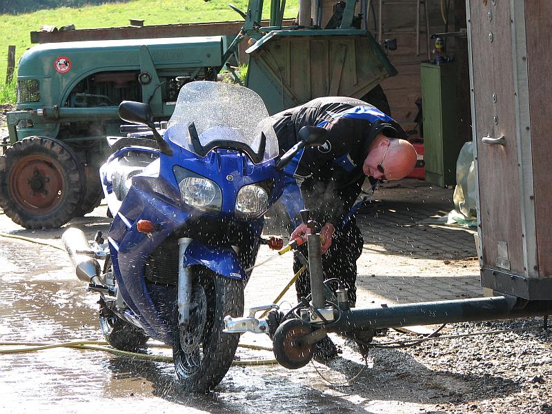 Die Bikes werden in unserer Maschinenhalle trocken untergestellt– in der gut sortierten Werkstatt vom André konnte schon so mancher Fahrer das eine oder andere kleine Wehwechen an der Maschine selbst beheben. An der Maschinenhalle steht auch ein Kärcher zum Reinigen der Bikes bereit. Falls Ihr in den Genuss des sauerländer Fisselwetters kommen solltet, kann der große Heizungsraum unserer Hackschnitzelanlage zum Trocknen des nassen Leders genutzt werden.