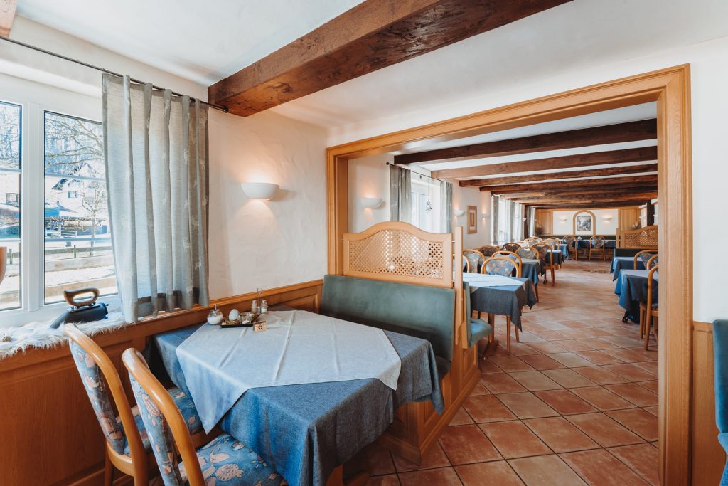 Bei Schneewetter Drei-Gang-Menü im Stammhaus. Bei Schnee und Eis ist die Almhütte nicht erreichbar.